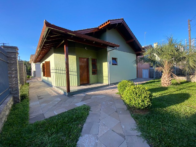 Casa de esquina com 3 dormitórios sendo 1 suíte, sala de estar ampla, cozinha e sala de jantar conjugadas, banheiro social, garagem fechada para 2 veículos com banheiro, despensa e CHURRASQUEIRA ROTATIVA, 7 vagas externas para mais veículos, ou para caminhão de porte médio. Totalmente terrea, e cercada, todas as aberturas em madeira de alta qualidade. Área Construída: 143,00m² Área Terreno: 342,00m² Analisa imóvel de menor valor como parte de pagamento. Agende sua visita com um dos nossos corretores!