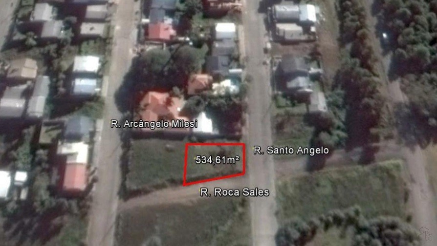 Terreno Urbano, situado na Rua Santo Angelo, esquina com a Rua Roca Sales, no Bairro Monte Pasqual, constituído pelo lote nº 27, da Quadra nº 450. Sem Benfeitorias, com a área total de 534,61m².